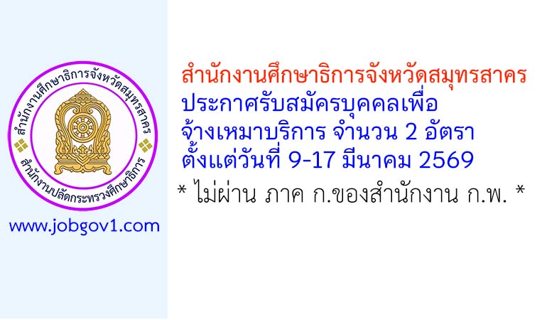 สำนักงานศึกษาธิการจังหวัดสมุทรสาคร รับสมัครบุคคลเพื่อจ้างเหมาบริการ 2 อัตรา ตั้งแต่วันที่ 9-17 มีนาคม 2569