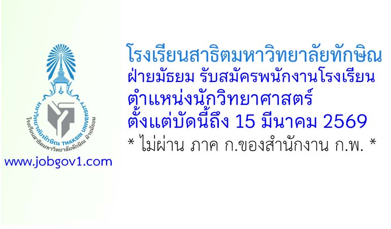 โรงเรียนสาธิตมหาวิทยาลัยทักษิณ ฝ่ายมัธยม รับสมัครสอบแข่งขันเป็นพนักงานโรงเรียน ตำแหน่งนักวิทยาศาสตร์ ตั้งแต่บัดนี้ถึง 15 มีนาคม 2569