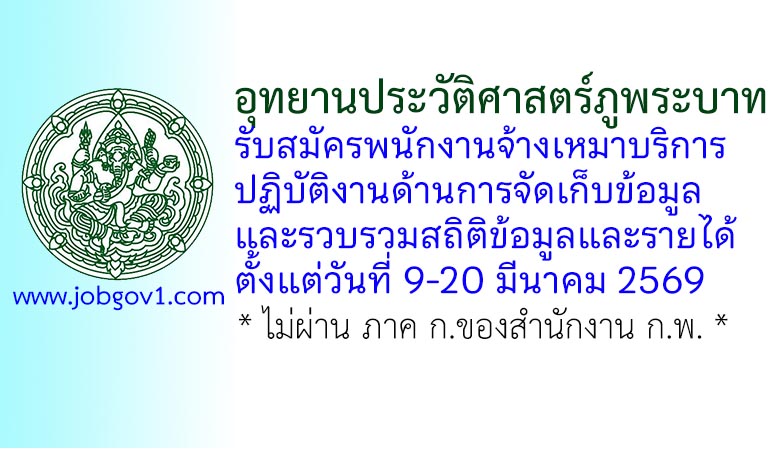 อุทยานประวัติศาสตร์ภูพระบาท รับสมัครพนักงานจ้างเหมาบริการ ปฏิบัติงานด้านการจัดเก็บข้อมูลและรวบรวมสถิติข้อมูลและรายได้ ตั้งแต่วันที่ 9-20 มีนาคม 2569
