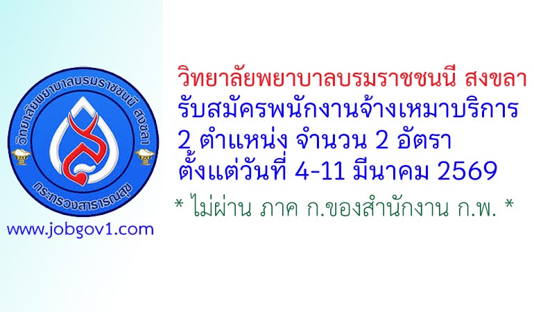 วิทยาลัยพยาบาลบรมราชชนนี สงขลา รับสมัครพนักงานจ้างเหมาบริการ 2 อัตรา ตั้งแต่วันที่ 4-11 มีนาคม 2569