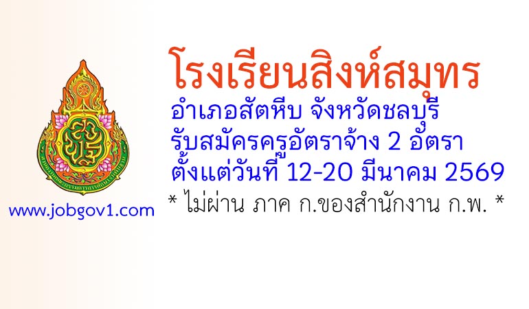 โรงเรียนสิงห์สมุทร รับสมัครครูอัตราจ้าง 2 อัตรา ตั้งแต่วันที่ 12-20 มีนาคม 2569