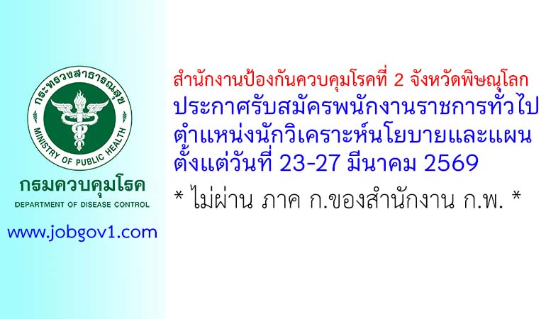 สำนักงานป้องกันควบคุมโรคที่ 2 จังหวัดพิษณุโลก รับสมัครพนักงานราชการทั่วไป ตำแหน่งนักวิเคราะห์นโยบายและแผน ตั้งแต่วันที่ 23-27 มีนาคม 2569