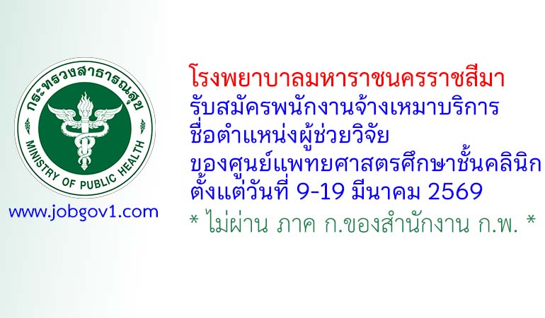 โรงพยาบาลมหาราชนครราชสีมา รับสมัครพนักงานจ้างเหมาบริการ ตำแหน่งผู้ช่วยวิจัยของศูนย์แพทยศาสตรศึกษาชั้นคลินิก ตั้งแต่วันที่ 9-19 มีนาคม 2569