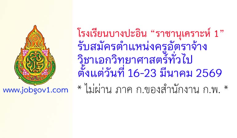 โรงเรียนบางปะอิน “ราชานุเคราะห์ 1” รับสมัครครูอัตราจ้าง วิชาเอกวิทยาศาสตร์ทั่วไป