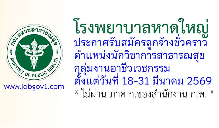 โรงพยาบาลหาดใหญ่ รับสมัครลูกจ้างชั่วคราว ตำแหน่งนักวิชาการสาธารณสุข กลุ่มงานอาชีวเวชกรรม ตั้งแต่วันที่ 18-31 มีนาคม 2569