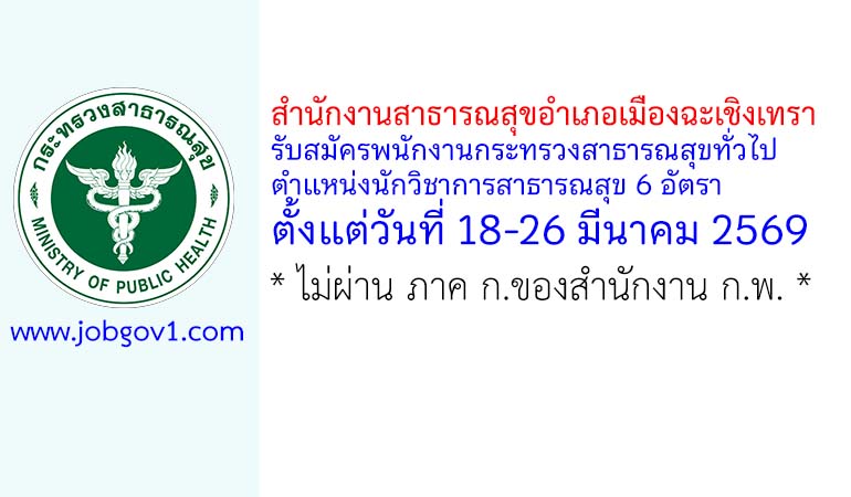สำนักงานสาธารณสุขอำเภอเมืองฉะเชิงเทรา รับสมัครพนักงานกระทรวงสาธารณสุขทั่วไป ตำแหน่งนักวิชาการสาธารณสุข 6 อัตรา ตั้งแต่วันที่ 18-26 มีนาคม 2569