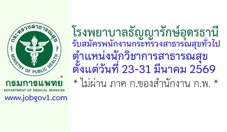 โรงพยาบาลธัญญารักษ์อุดรธานี รับสมัครพนักงานกระทรวงสาธารณสุขทั่วไป ตำแหน่งนักวิชาการสาธารณสุข ตั้งแต่วันที่ 23-31 มีนาคม 2569