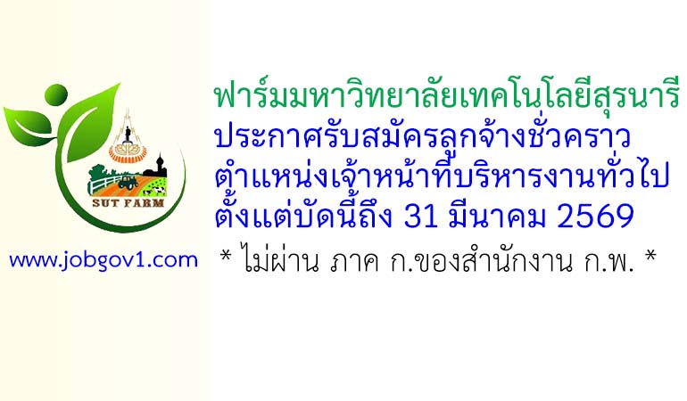 ฟาร์มมหาวิทยาลัยเทคโนโลยีสุรนารี รับสมัครลูกจ้างชั่วคราว ตำแหน่งเจ้าหน้าที่บริหารงานทั่วไป ตั้งแต่บัดนี้ถึง 31 มีนาคม 2569