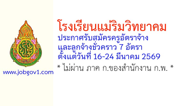 โรงเรียนแม่ริมวิทยาคม รับสมัครครูอัตราจ้าง และลูกจ้างชั่วคราว 7 อัตรา ตั้งแต่วันที่ 16-24 มีนาคม 2569