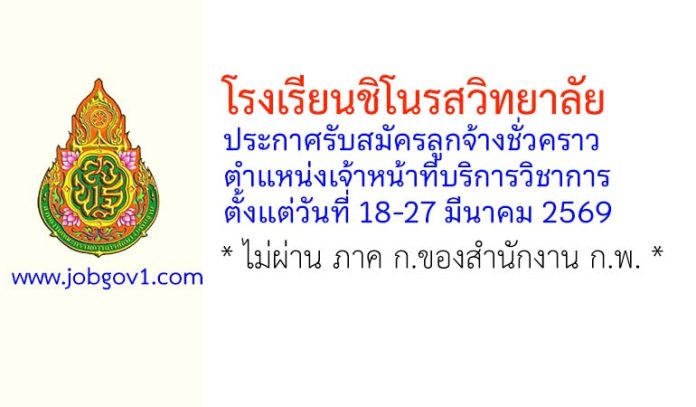 โรงเรียนชิโนรสวิทยาลัย รับสมัครลูกจ้างชั่วคราว ตำแหน่งเจ้าหน้าที่บริการวิชาการ ตั้งแต่วันที่ 18-27 มีนาคม 2569