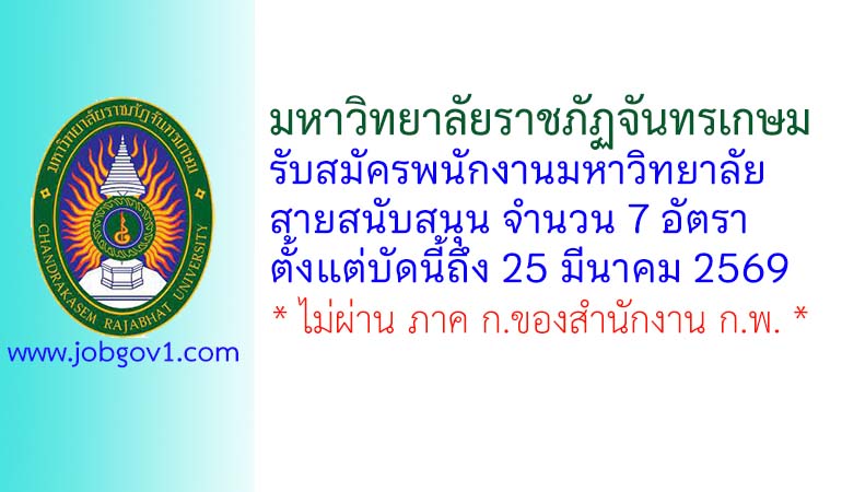 มหาวิทยาลัยราชภัฏจันทรเกษม รับสมัครพนักงานมหาวิทยาลัยสายสนับสนุน 7 อัตรา ตั้งแต่บัดนี้ถึง 25 มีนาคม 2569