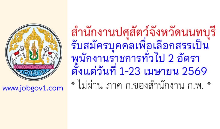สำนักงานปศุสัตว์จังหวัดนนทบุรี รับสมัครบุคคลเพื่อเลือกสรรเป็นพนักงานราชการทั่วไป 2 อัตรา ตั้งแต่วันที่ 1-23 เมษายน 2569