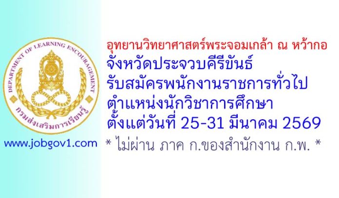 อุทยานวิทยาศาสตร์พระจอมเกล้า ณ หว้ากอ จังหวัดประจวบคีรีขันธ์ รับสมัครพนักงานราชการทั่วไป ตำแหน่งนักวิชาการศึกษา ตั้งแต่วันที่ 25-31 มีนาคม 2569