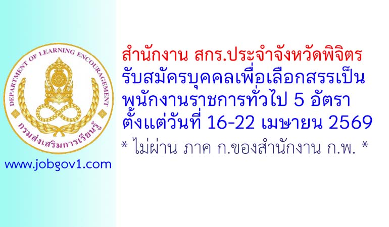 ประกาศสำนักงานส่งเสริมการเรียนรู้ประจำจังหวัดพิจิตร เรื่อง รับสมัครบุคคลเพื่อสรรหาและเลือกสรรเป็นพนักงานราชการทั่วไป