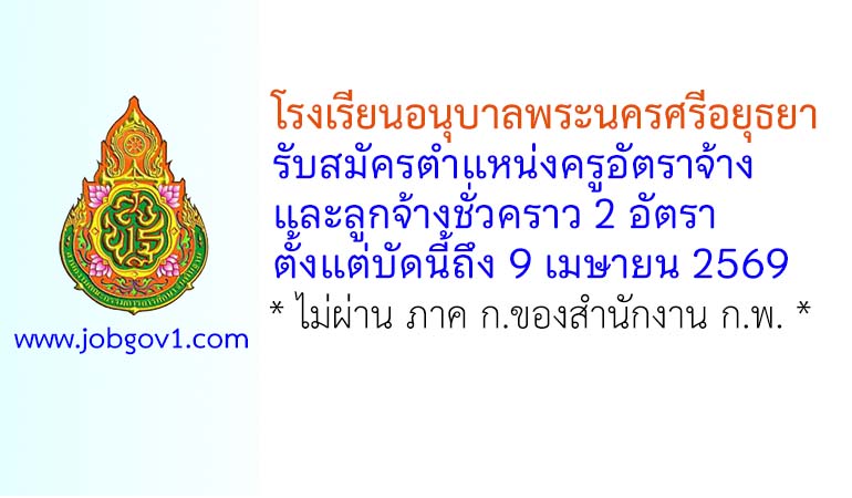 โรงเรียนอนุบาลพระนครศรีอยุธยา รับสมัครครูอัตราจ้าง และลูกจ้างชั่วคราว 2 อัตรา ตั้งแต่บัดนี้ถึง 9 เมษายน 2569