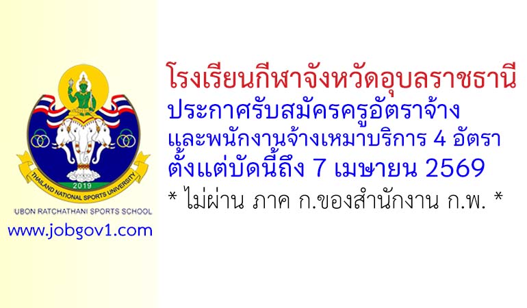 โรงเรียนกีฬาจังหวัดอุบลราชธานี รับสมัครครูอัตราจ้าง และพนักงานจ้างเหมาบริการ 4 อัตรา ตั้งแต่บัดนี้ถึง 7 เมษายน 2569