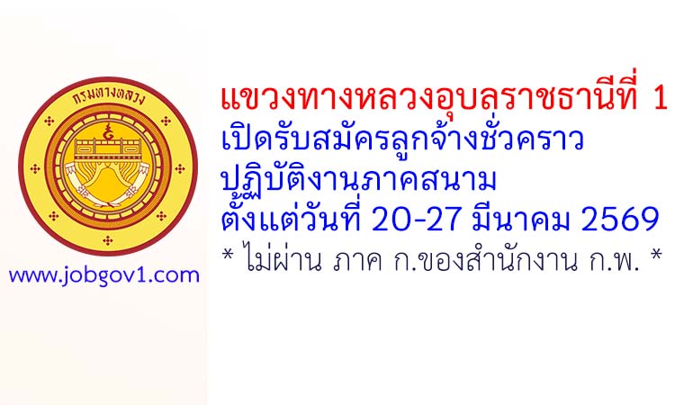 แขวงทางหลวงอุบลราชธานีที่ 1 รับสมัครลูกจ้างชั่วคราว ปฏิบัติงานภาคสนาม ตั้งแต่วันที่ 20-27 มีนาคม 2569
