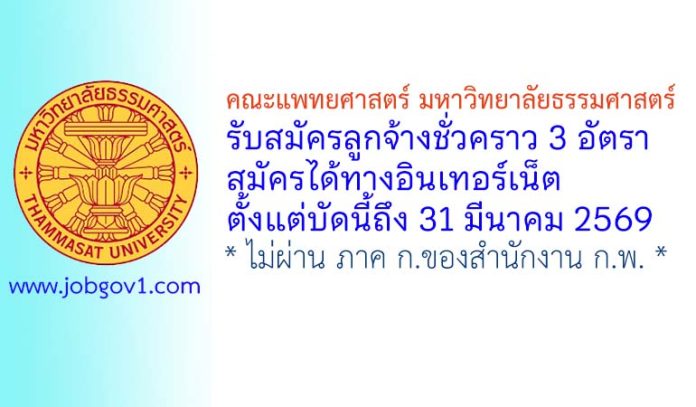 คณะแพทยศาสตร์ มหาวิทยาลัยธรรมศาสตร์ รับสมัครลูกจ้างชั่วคราว 3 อัตรา ตั้งแต่บัดนี้ถึง 31 มีนาคม 2569