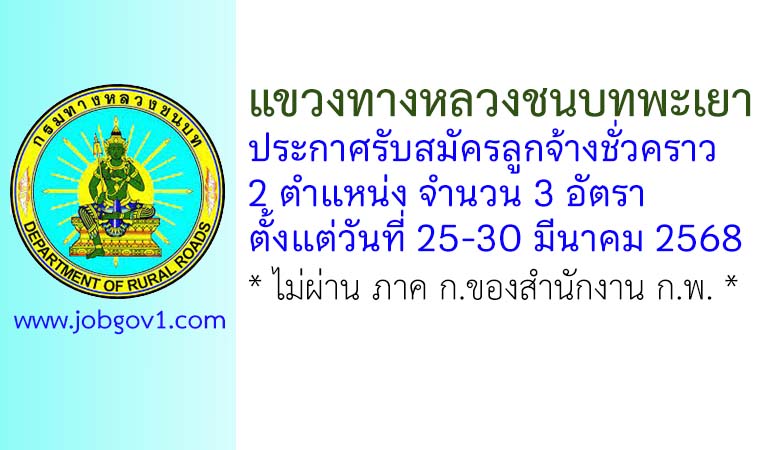 แขวงทางหลวงชนบทพะเยา รับสมัครลูกจ้างชั่วคราว 3 อัตรา ตั้งแต่วันที่ 25-30 มีนาคม 2568