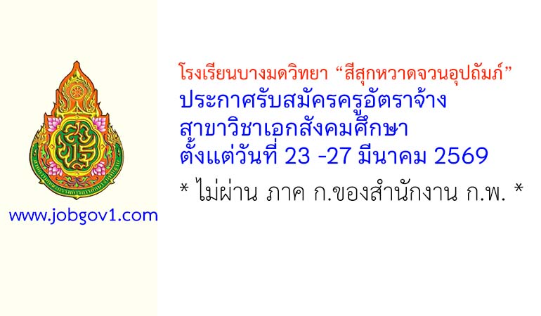 โรงเรียนบางมดวิทยา “สีสุกหวาดจวนอุปถัมภ์” รับสมัครครูอัตราจ้าง สาขาวิชาเอกสังคมศึกษา ตั้งแต่วันที่ 23 -27 มีนาคม 2569