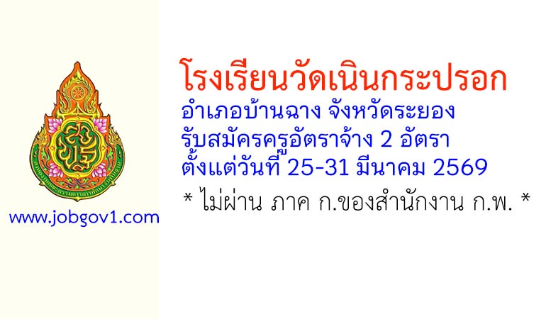 โรงเรียนวัดเนินกระปรอก รับสมัครครูอัตราจ้าง 2 อัตรา ตั้งแต่วันที่ 25-31 มีนาคม 2569