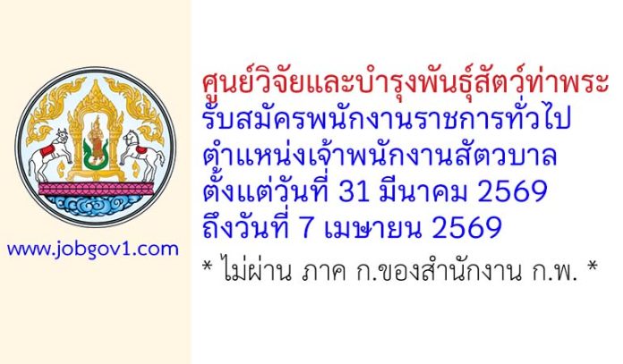 ศูนย์วิจัยและบำรุงพันธุ์สัตว์ท่าพระ รับสมัครพนักงานราชการทั่วไป ตำแหน่งเจ้าพนักงานสัตวบาล ตั้งแต่วันที่ 31 มีนาคม 2569 ถึงวันที่ 7 เมษายน 2569