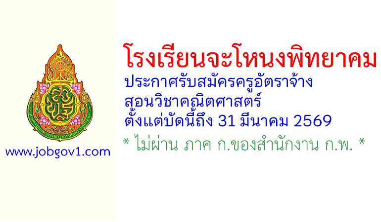 โรงเรียนจะโหนงพิทยาคม รับสมัครครูอัตราจ้าง สอนวิชาคณิตศาสตร์