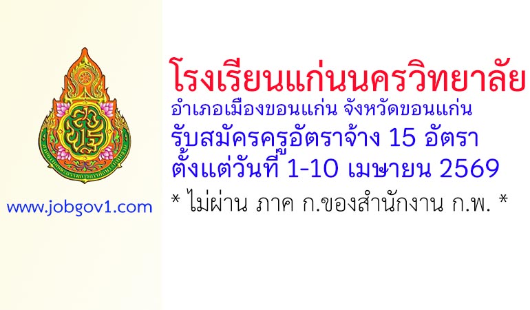 โรงเรียนแก่นนครวิทยาลัย รับสมัครครูอัตราจ้าง 15 อัตรา ตั้งแต่วันที่ 1-10 เมษายน 2569