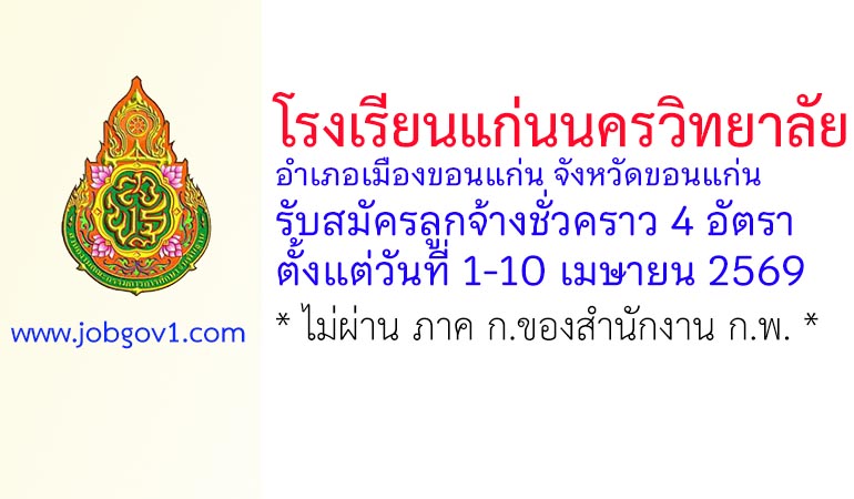โรงเรียนแก่นนครวิทยาลัย รับสมัครลูกจ้างชั่วคราว 4 อัตรา ตั้งแต่วันที่ 1-10 เมษายน 2569
