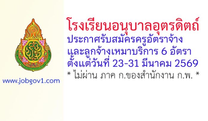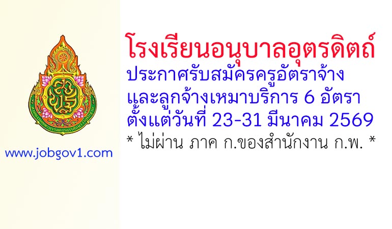 โรงเรียนอนุบาลอุตรดิตถ์ รับสมัครครูอัตราจ้าง และลูกจ้างเหมาบริการ 6 อัตรา ตั้งแต่วันที่ 23-31 มีนาคม 2569