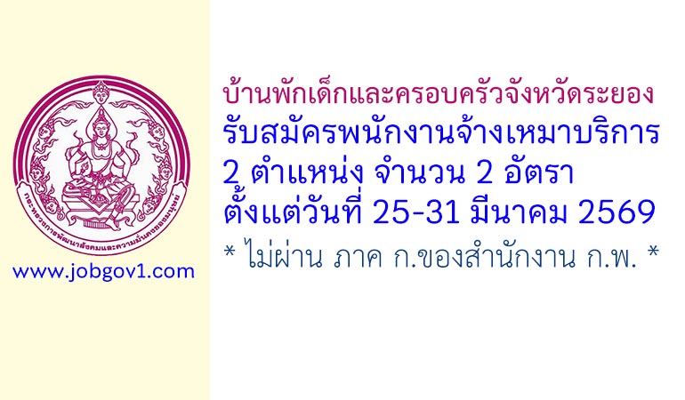 บ้านพักเด็กและครอบครัวจังหวัดระยอง รับสมัครพนักงานจ้างเหมาบริการ 2 อัตรา ตั้งแต่วันที่ 25-31 มีนาคม 2569