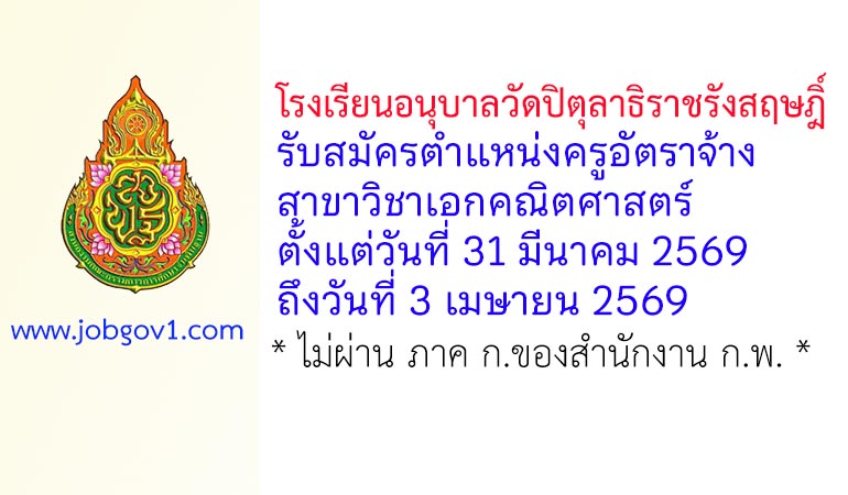โรงเรียนอนุบาลวัดปิตุลาธิราชรังสฤษฎิ์ รับสมัครครูอัตราจ้าง สาขาวิชาเอกคณิตศาสตร์ ตั้งแต่วันที่ 31 มีนาคม 2569 ถึงวันที่ 3 เมษายน 2569