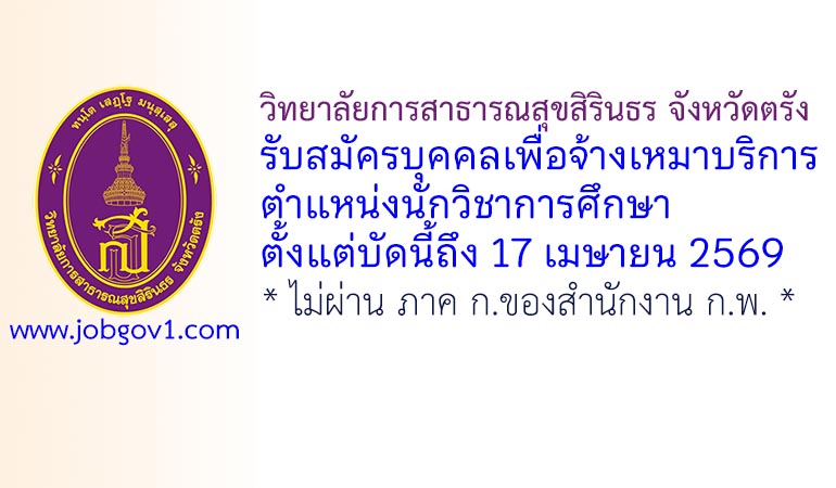 วิทยาลัยการสาธารณสุขสิรินธร จังหวัดตรัง รับสมัครบุคคลเพื่อจ้างเหมาบริการ ตำแหน่งนักวิชาการศึกษา ตั้งแต่บัดนี้ถึง 17 เมษายน 2569