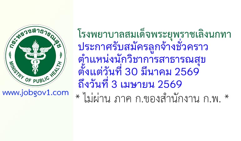 โรงพยาบาลสมเด็จพระยุพราชเลิงนกทา รับสมัครลูกจ้างชั่วคราว ตำแหน่งนักวิชาการสาธารณสุข ตั้งแต่วันที่ 30 มีนาคม 2569 ถึงวันที่ 3 เมษายน 2569