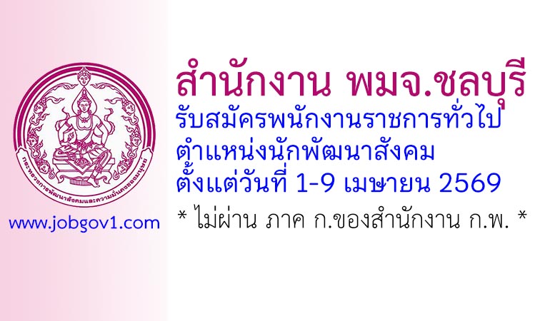 สำนักงาน พมจ.ชลบุรี รับสมัครพนักงานราชการทั่วไป ตำแหน่งนักพัฒนาสังคม ตั้งแต่วันที่ 1-9 เมษายน 2569