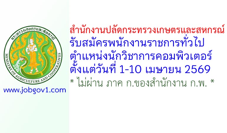 สำนักงานปลัดกระทรวงเกษตรและสหกรณ์ รับสมัครพนักงานราชการทั่วไป ตำแหน่งนักวิชาการคอมพิวเตอร์ ตั้งแต่วันที่ 1-10 เมษายน 2569