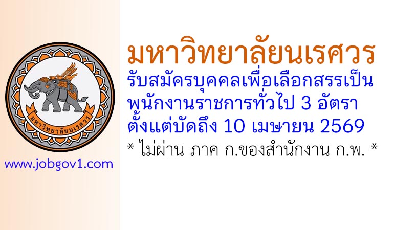 มหาวิทยาลัยนเรศวร รับสมัครบุคคลเพื่อเลือกสรรเป็นพนักงานราชการทั่วไป 3 อัตรา ตั้งแต่บัดถึง 10 เมษายน 2569