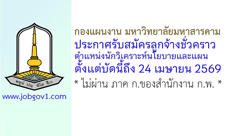 กองแผนงาน มหาวิทยาลัยมหาสารคาม รับสมัครลูกจ้างชั่วคราว ตำแหน่งนักวิเคราะห์นโยบายและแผน ตั้งแต่บัดนี้ถึง 24 เมษายน 2569