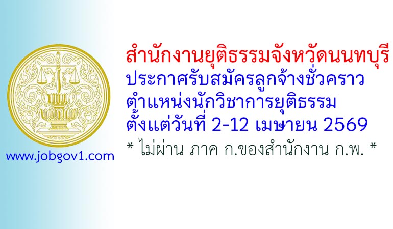 สำนักงานยุติธรรมจังหวัดนนทบุรี รับสมัครลูกจ้างชั่วคราว ตำแหน่งนักวิชาการยุติธรรม ตั้งแต่วันที่ 2-12 เมษายน 2569