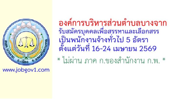 องค์การบริหารส่วนตำบลบางจาก รับสมัครบุคคลเพื่อสรรหาและเลือกสรรเป็นพนักงานจ้างทั่วไป 5 อัตรา ตั้งแต่วันที่ 16-24 เมษายน 2569