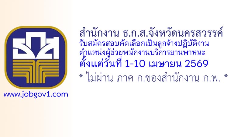 สำนักงาน ธ.ก.ส.จังหวัดนครสวรรค์ รับสมัครสอบคัดเลือกบุคคลเป็นลูกจ้างปฏิบัติงาน ตำแหน่งผู้ช่วยพนักงานบริการยานพาหนะ ตั้งแต่วันที่ 1-10 เมษายน 2569