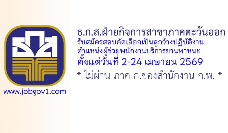 ธ.ก.ส.ฝ่ายกิจการสาขาภาคตะวันออก รับสมัครลูกจ้างปฏิบัติงาน ตำแหน่งผู้ช่วยพนักงานบริการยานพาหนะ ตั้งแต่วันที่ 2-24 เมษายน 2569
