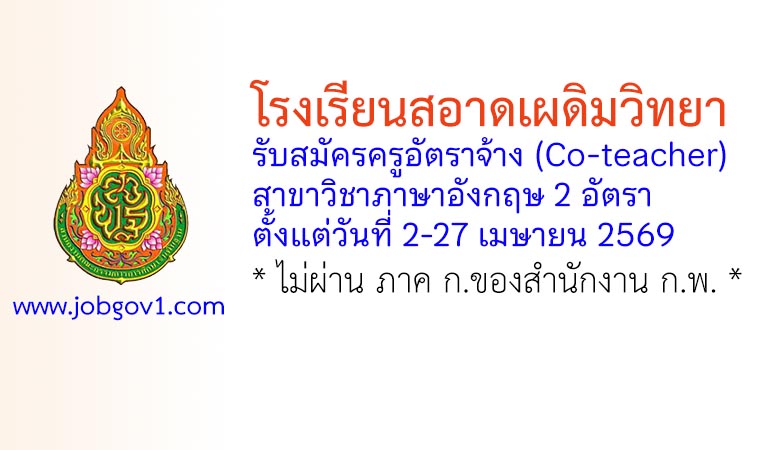โรงเรียนสอาดเผดิมวิทยา รับสมัครครูอัตราจ้าง (Co-teacher) วิชาภาษาอังกฤษ 2 อัตรา ตั้งแต่วันที่ 2-27 เมษายน 2569