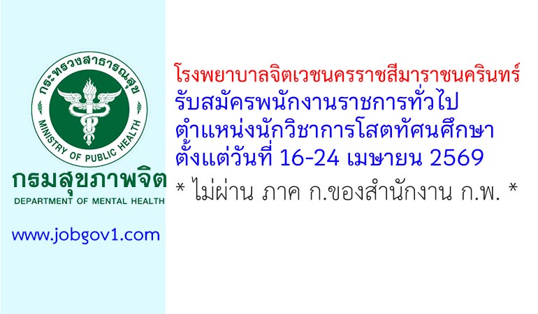 โรงพยาบาลจิตเวชนครราชสีมาราชนครินทร์ รับสมัครพนักงานราชการทั่วไป ตำแหน่งนักวิชาการโสตทัศนศึกษา ตั้งแต่วันที่ 16-24 เมษายน 2569