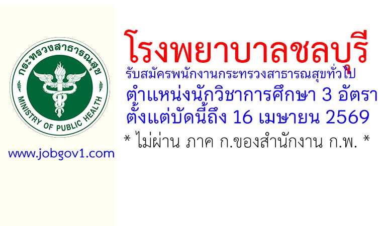 โรงพยาบาลชลบุรี รับสมัครพนักงานกระทรวงสาธารณสุขทั่วไป ตำแหน่งนักวิชาการศึกษา 3 อัตรา ตั้งแต่บัดนี้ถึง 16 เมษายน 2569