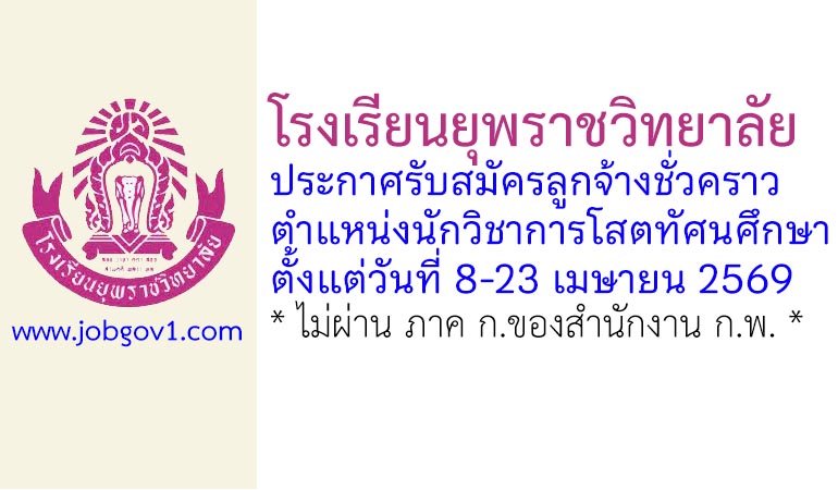 โรงเรียนยุพราชวิทยาลัย รับสมัครลูกจ้างชั่วคราว ตำแหน่งนักวิชาการโสตทัศนศึกษา ตั้งแต่วันที่ 8-23 เมษายน 2569