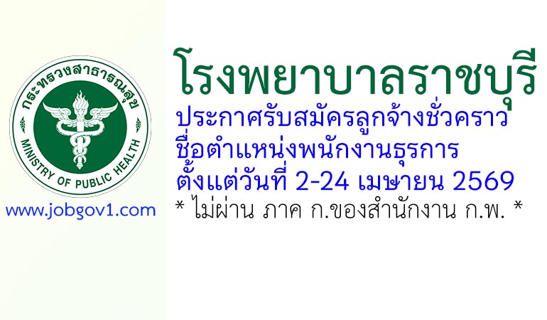 โรงพยาบาลราชบุรี รับสมัครลูกจ้างชั่วคราว ตำแหน่งพนักงานธุรการ ตั้งแต่วันที่ 2-24 เมษายน 2569