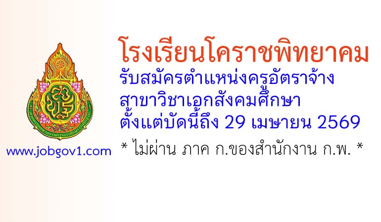 โรงเรียนโคราชพิทยาคม รับสมัครครูอัตราจ้าง สาขาวิชาเอกสังคมศึกษา ตั้งแต่บัดนี้ถึง 29 เมษายน 2569
