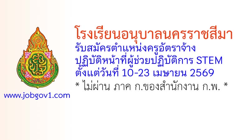 โรงเรียนอนุบาลนครราชสีมา รับสมัครครูอัตราจ้าง ปฏิบัติหน้าที่ผู้ช่วยปฏิบัติการ STEM ตั้งแต่วันที่ 10-23 เมษายน 2569