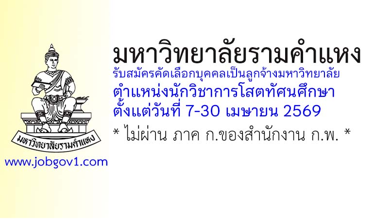 มหาวิทยาลัยรามคำแหง รับสมัครคัดเลือกบุคคลเป็นลูกจ้างมหาวิทยาลัย ตำแหน่งนักวิชาการโสตทัศนศึกษา ตั้งแต่วันที่ 7-30 เมษายน 2569